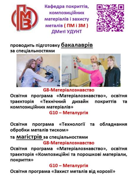 Шановні абітурієнти, запрошуємо Вас отримати престижну вищу освіту за спеціальністю G8– Матеріалознавство, освітньою програмою