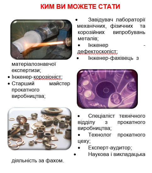 Студенти мають можливість брати участь у наукових експериментах по створенню нових матеріалів, технологій їхнього одержання, їх термічної обробки та розробці методів ефективного захисту матеріалів від корозії.