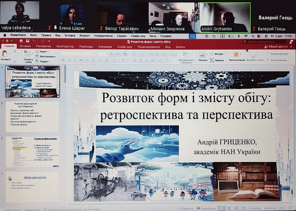 On Decembers, 2, 2021 in the Kyiv national economic university of the name of Vadim Hetman, sitting the Interdepartmental co-ordinating council took place of economic theory of the National academy of sciences of Ukraine and Department of education and science of Ukraine, sanctified to the discussion of problems of place and role of economic theory in tuition of specialists of economy. Chairmens of Interdepartmental advice - academician of NAS of Ukraine, director of Institute of economy and prognostication of NAS of Ukraine of V.Geec, doctor of economic sciences, professor, chancellor of the Kyiv national economic university of the name of Vadim Hetman D.Lukjanenco, leading scientists-economists of Ukraine. Prof. V.Tarasevich has performance on the meeting.