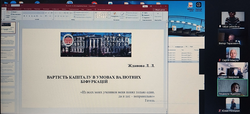 The most important event, which will determine the direction of the scientific life of the department for the coming years, was the opening and registration of research work on the topic "Theory and practice of intellectual and innovative and informational development of the national economy of Ukraine in the conditions of global and European integration challenges" (2023-2025). Teachers, students and graduate students of the department took part in the III All-Ukrainian scientific and practical conference of higher education graduates and young scientists "Financial and economic mechanisms of entrepreneurship development: theoretical and practical aspects" (November 24-25, 2022, Dnipro) and the V International Conference "Innovative technologies in science and education. European experience" (November 29, 2022, Dnipro). At the scientific seminar Doctoral student I. Leonidov made a presentation on the topic "Modeling the appropriation of an innovative and informational intellectual product. At the meeting of the student research group the report of master's student N. Ziberova "Development of import substitution in the restaurant business of Ukraine" was heard.
