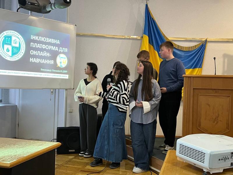 У секції «Інформаційні технології та робототехніка» 1 місце посіла команда гімназії №41 з проєктом «Інклюзивна платформа для онлайн-навчання» (ментор – доцент кафедри економічної інформатики Удачина К.О.).