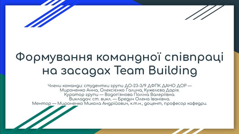 Команда, ментором якої був кандидат технічних наук, доцент, професор кафедри управління та адміністрування ДМетІ УДУНТ Мироненко Микола Андрійович, представляла учнівську молодь, яка навчається у Дніпровському фаховому педагогічному коледжі й підготувала наукову доповідь до економіко-гуманітарної секції на тему: «Формування командної співпраці на засадах Team Building». Доповідь викликала жвавий інтерес у членів журі Другого Хакатону і отримала номінацію як кращий проєкт, що вирішує важливі соціальні та екологічні проблеми.